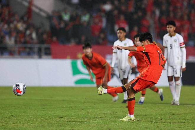 王翔主罚命中。 11月24日晚,U17亚洲杯预选赛A组第二轮在重庆市永川区体育中心体育场打响。中国U16男足以14-0击败东帝汶U16男足。谢晋、赵松源、帅伟豪各进3球,张柏林进2球,张旭耀、王黑、万翔各进1球。中国队两场比赛均获胜,凭借得分优势获得小组第一。 U17亚洲杯将于2026年5月7日至24日在沙特阿拉伯举行。参加U17亚洲杯预选赛的共有38支球队将被分为3组,每组6队,其余4组将分为7组,每组5队。中国队与孟加拉国队、斯里兰卡队、巴林队、东帝汶队和文莱队分在A组。只有小组中最好的球队才能直接参加,所以无论他们的对手是谁,他们都会有付出他们的一切。与首轮相比,中国U-16队的首发阵容进行了四次调整。决赛中,前锋张柏林、前锋惠进、中场龚希诺、右后卫景峰替补登场。帅伟豪已经成为球队一线的绝对支柱,从中锋位置转到进攻边路。中国U-16队从比赛一开始就控制住了对手中场,仅上半场就拿下6分。其中,张柏林和谢静各进两球。帅伟豪和张旭耀分别攻入另外两个进球。帅伟豪庆祝进球。下半场,主教练浮岛舜考虑到球员保护,陆续更换了首发球员,包括张柏林、张学耀、南子魂、万向和仇云雄两名首发球员。不过球队的攻击力依然完好,又拿下8分。其中,谢晋得分首次上演帽子戏法,帅伟豪也“戴上帽子”,再进两球。王翔也罚进点球离场。此外,替补球员曹松元凭借身材高大的优势,成为本场比赛队内第三位上演帽子戏法的球员。凭借这场伟大的胜利,中国U-16队不仅取得两连胜,还以净胜球优势击败孟加拉国队(18球),在积分榜上取得领先。根据赛程安排,U-16队A组剩余三场比赛分别是26日对阵文莱、28日对阵斯里兰卡、30日对阵孟加拉国。黄启元 扬子晚报记者/紫牛新闻