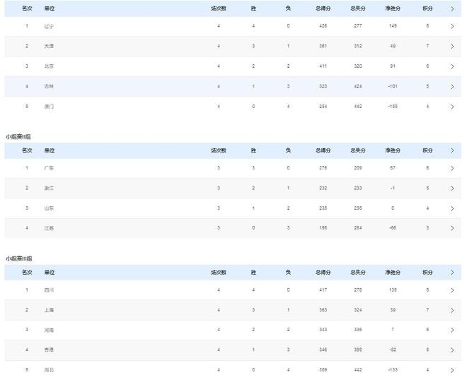 全国男子五人篮球锦标赛成人组的所有团体比赛已经结束,晋级八强的球队已经确定。三个小组中的一组由四支球队组成,因此为了保持公平性,两个五队小组的排名将通过比赛成绩和最后名次减去积分差来计算。每组最好的两支球队和两支第三好的球队将晋级四分之一决赛。没有必要计算每组最好的两支球队。分别是辽宁队和天津队、广东队和浙江队、四川队和上海队。至于成绩不错的第三名组,北京队、山东队、河南队均为1胜2负,剔除小组排名最高的胜负比较低。至于哪支球队晋级,还需要根据规则来计算。 I组第三名是B组北京队。剔除与小组末位的澳门队的分差,北京队的净优势为+31分。第二组第三名是山东队,本组只有四支球队。如果不进行额外计算,山东队的净得分将为0分。第三组第三名的是河南队。剔除与湖北队的分差,河南队的净得分为-13分。也就是说,第三名的球队北京队和山东队是成绩最好的两支球队,这两支球队也合力晋级八强。晋级八强的球队将是辽宁队、天津队和北京队。广东、浙江、山东。还有四川、上海。根据规则,8v4比赛中,八支队伍将根据成绩分为四组,每组两队,通过抽签的方式进行比赛。简单来说,之后按照上述方法计算各队的成绩和净积分,辽宁队和四川队的净积分分别排名第一和第二,这两支球队被分在E组。广东队虽然成绩与辽宁队和四川队相同,但净积分不如这两队,因此只与表现最好的小组亚军上海队分在F组。浙江队和天津队分在G组,北京队和山东队分在H组。具体8v4比赛为E1-H1、F2-G2、G1-F1、H2-E2。这四场小组赛分为两个半场。上半部分是E1-H1和G1-F1,下半部分是F2-G2和H2-E2。最初,每组两队必须抽签决定名次。不过,由于小组赛相遇的两支球队在四分之一决赛中无法再次相遇,最终以8-4的比分决出胜负,辽宁队和四川队迎战北京队和山东队。不过,由于辽宁队和北京队在小组赛中交手,所以在四分之一决赛中只能对阵山东队,而四川队的对手是北京队。另外两场小组赛也将决出胜负:广东队对阵天津队、上海队对阵浙江队。在这四个小组之间的比赛中,将通过抽签决定哪两场比赛排名第一,哪两场比赛排名垫底。从这四组的对决情况和各队实力来看,辽宁队与山东队、广东队与天津队、四川队与北京队的比赛不会有太大紧张。辽宁队、广东队和四川队应该能够晋级半决赛。浙江队与上海队的比赛中,浙江队稍占优势,胜利的希望渺茫。e 高。辽宁队、广东队、四川队和浙江队将至少晋级半决赛。
